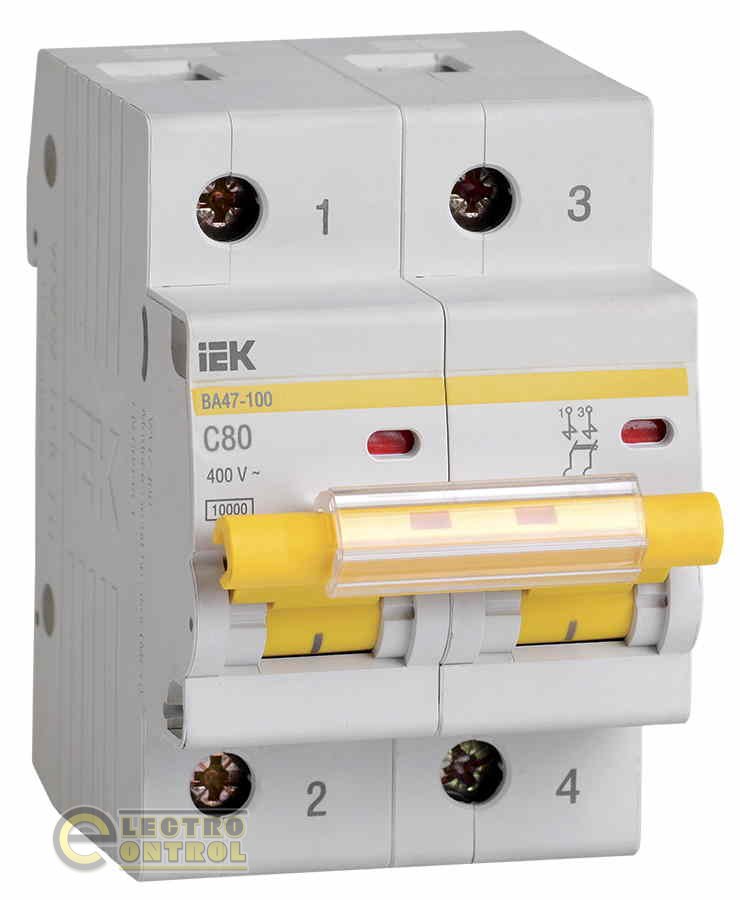 Автоматичний вимикач UEK (IEK) ВА47-100 MVA40-2-080-C 2p C 80А 10 кА AC