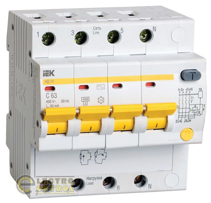 Швидкодіючий захисний вимикач, реагує на диференціальний струм, із вбудованим захистом від надструмів. Забезпечує три види захисту – захист людини від поразки електричним струмом при випадковому ненавмисному дотику до струмопровідним частинам електроустановок при ушкодженнях ізоляції; запобігання пожеж внаслідок протікання струмів витоку на землю; захист від перевантаження й короткого замикання. Апарат зберігає працездатність при зниженій напрузі мережі ( до 50 В) і має високу механічну зносостійкість. В апарату передбачена індикація спрацьовування від диференціального струму.