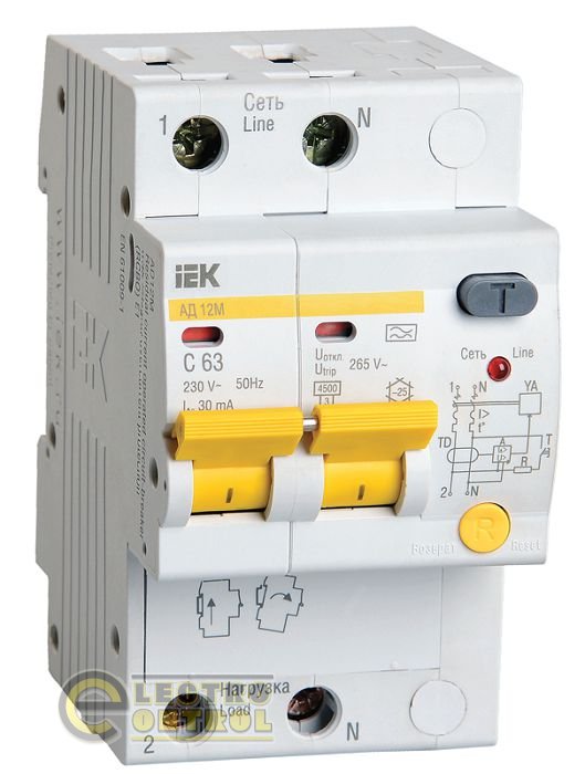 Швидкодіючий захисний вимикач, реагує на диференціальний струм, із вбудованим захистом від надструмів. Забезпечує три види захисту – захист людини від поразки електричним струмом при випадковому ненавмисному дотику до струмопровідним частинам електроустановок при ушкодженнях ізоляції; запобігання пожеж внаслідок протікання струмів витоку на землю; захист від перевантаження й короткого замикання. Апарат зберігає працездатність при зниженій напрузі мережі ( до 50 В) і має високу механічну зносостійкість. В апарату передбачена індикація спрацьовування від диференціального струму.