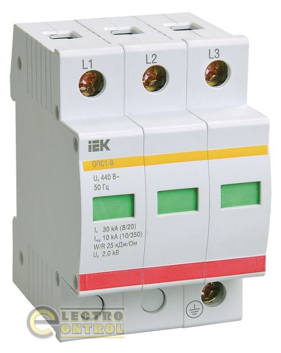 На сайті ecshop (Електроконтроль) Ви можете ознайомитися й купити обмежник імпульсної перенапруги ОПС1-B 3Р In=30kA Un=400B Im=60kA MOP20-3-B IEK.