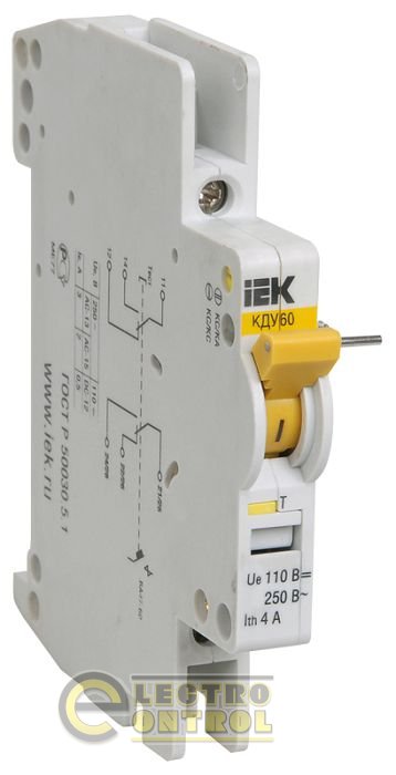 КДУ60 служить для одержання інформації про стан автоматичних вимикачів ВА47-60 у системах автоматизації технологічних процесів або захисту конкретних об'єктів. КДУ60 виконує функцію додаткового контакту й сигналізації положення механізму взводу автоматичного вимикача або диференціального автомата.
