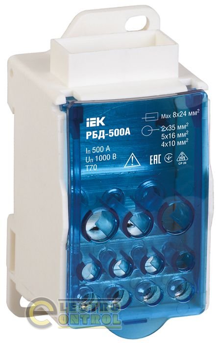 На сайті ecshop (Електроконтроль) Ви можете ознайомитися й купити розподільний блок на DIN-рейку РБД-500А RBD-500 IEK.