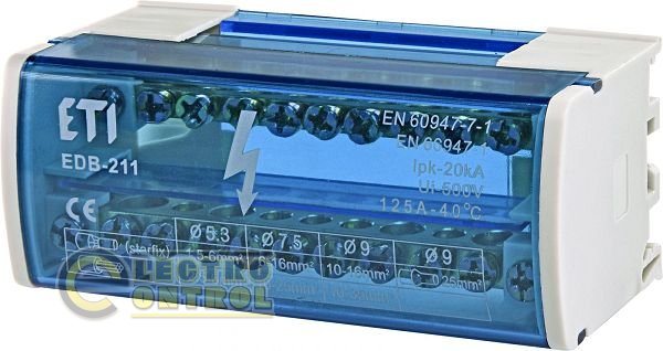 Розподільні блоки EDB використовуються в якості сполучних елементів: провідників нейтралі "N",заземлюючих провідників "PE", відходять ліній.