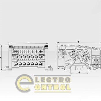 Чотириполюсний клемний блок 80А перетин проведення 10-16мм2, (низький тип), 2+20=22 отворів