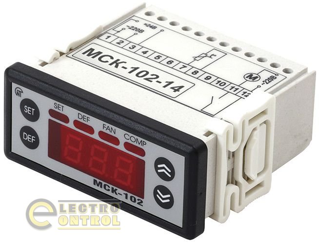 МСК-102 позволяет контролировать температуру морозильной камеры и проводить автоматическую оттайку отключением компрессора на заданное пользователем время.