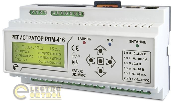 На сайте eсshop (Электроконтроль) Вы можете ознакомиться и купить регистратор электрических параметров РПМ-416. Это микропроцессорное устройство , которое замеряет значения электрических параметров и отображает их на дисплее с последующим архивированием на съёмную карту памяти SD/MMC, для дальнейшего их анализа. Анализ проводится программным обеспечением RPM-416 «Data Analysis» Регистратор оснащен часами (реальное время), питаются от встроенной батареи. Также есть выход для подключения к интернету стандарта 10Base-T/100Base-T, что позволяет одновременно записывать данные на карту памяти и передавать их на компьютер.