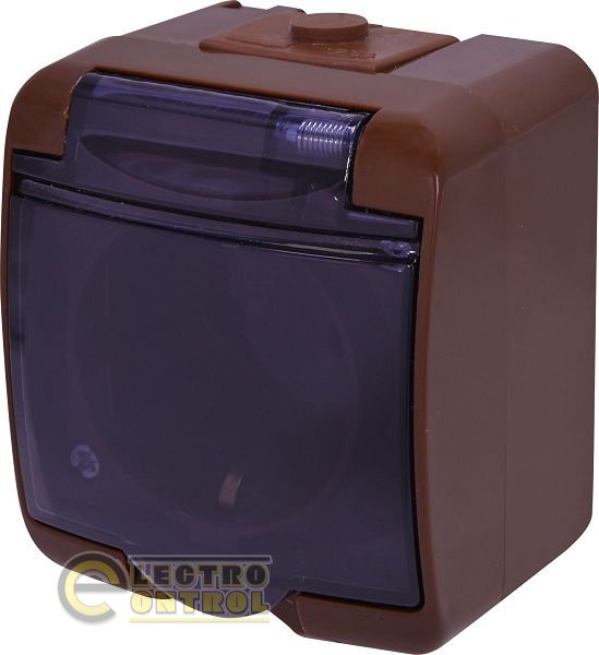 Розетка 1-я (Schuko) (коричневий димчаста кришка) (IP44) RHE-1sd-KR 4668051