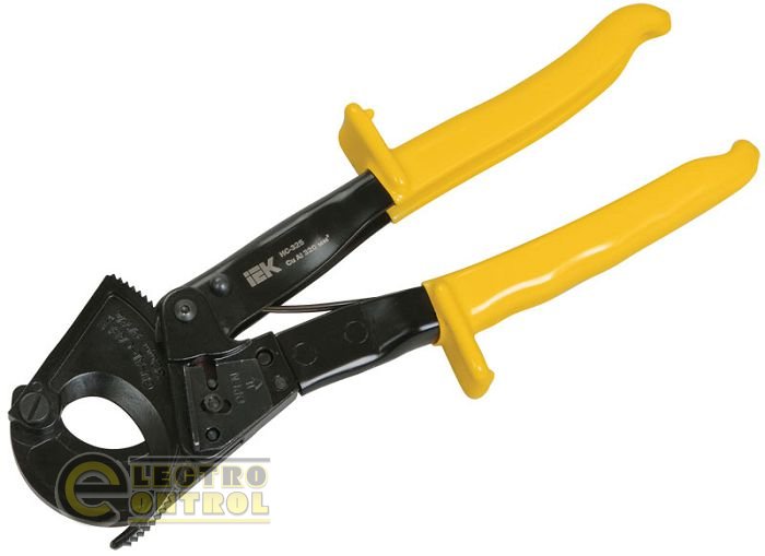 Инструмент для резки кабеля с пластмассовой и бумажной изоляцией изготавливается из инструментальной стали с высокой режущей способностью. Специальная геометрия лезвий позволят осуществлять работу безопасно и быстро. Обладает высокой стабильностью и незначительной массой. Ножницы секторные снабжены храповым механизмом, выдвижными ручками, блокиратором резки. Замок устроен таким образом, что позволяет осуществлять обратный ход лезвия, необходимый в случае попадания в нож посторонних объектов. Чрезвычайно высокая режущая способность инструмента достигается за счёт оптимальной конструкции ножниц и режущих ножей специальной геометрии.