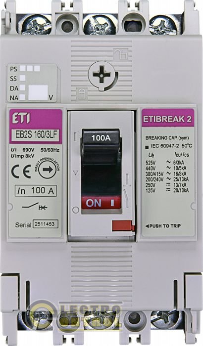 На сайті інтернет – магазину ecshop (Електроконтроль) , Ви можете ознайомитися й купити автоматичний вимикач EB2S 160/3LF 100А 3P (16kA фіксовані настроювання) 4671809 ETI.