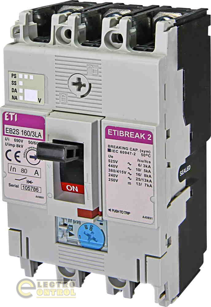 На сайті інтернет – магазину ecshop (Електроконтроль) , Ви можете ознайомитися й купити автоматичний вимикач EB2S 160/3LA 80А 3P (16kA регулюється) 4671882 ETI.