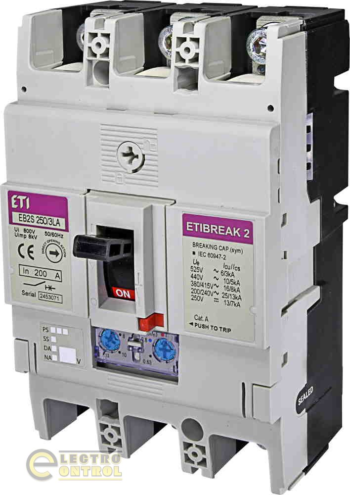 На сайті інтернет – магазину ecshop (Електроконтроль) , Ви можете ознайомитися й купити автоматичний вимикач EB2S 250/3LA 200А 3P (16kA регулюється) 4671887 ETI.