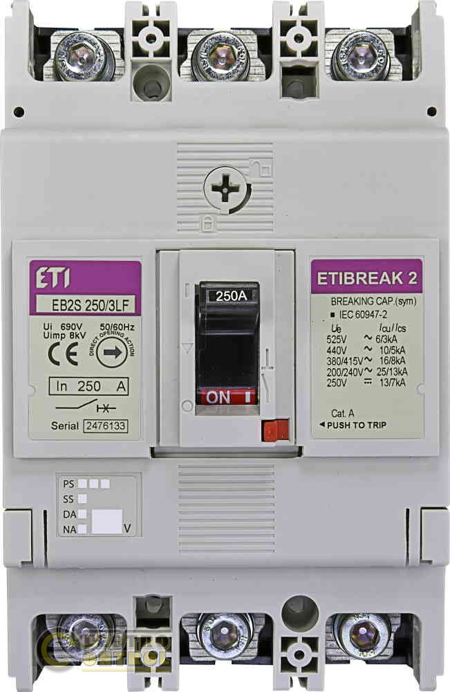 На сайті інтернет – магазину ecshop (Електроконтроль) , Ви можете ознайомитися й купити автоматичний вимикач EB2S 250/3LF 250А 3P (16kA фіксовані настроювання) 4671813 ETI.