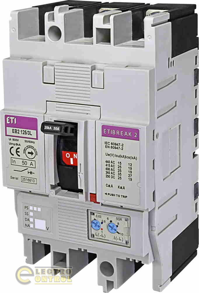 На сайті інтернет – магазину ecshop (Електроконтроль) , Ви можете ознайомитися й купити автоматичний вимикач EB2 125/3L 50А 3р (25ка) 4671023 ETI.
