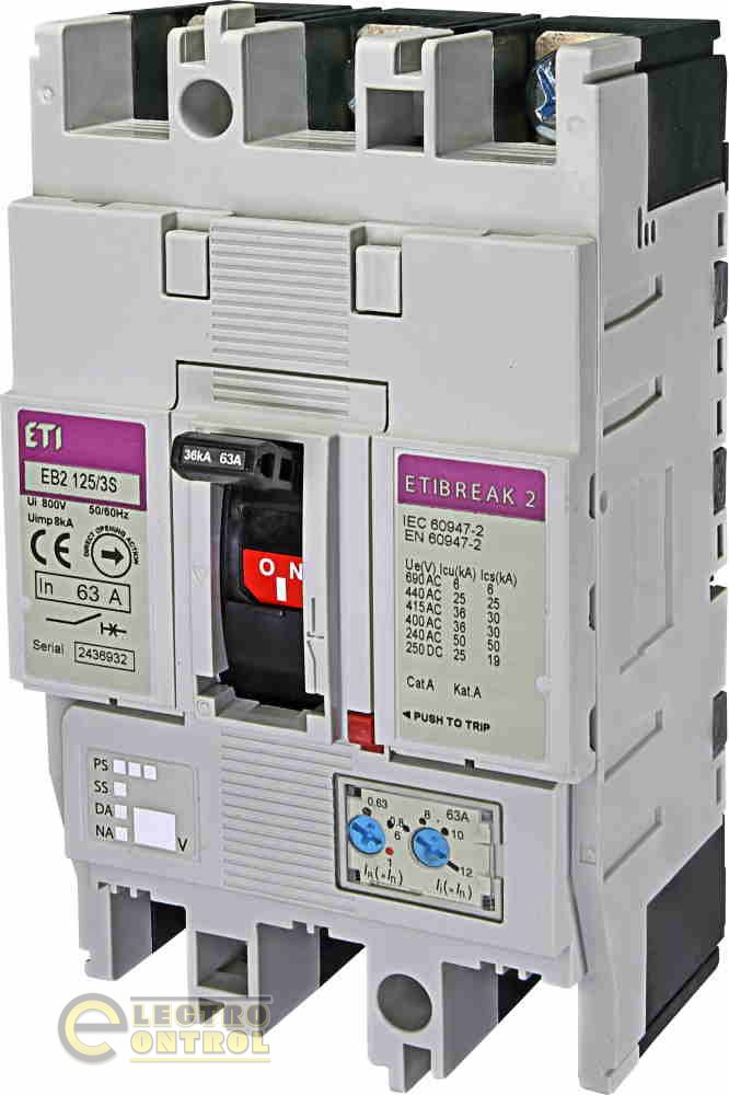 На сайті інтернет – магазину ecshop (Електроконтроль) , Ви можете ознайомитися й купити автоматичний вимикач EB2 125/3S 63А 3р (36ка) 4671044 ETI.
