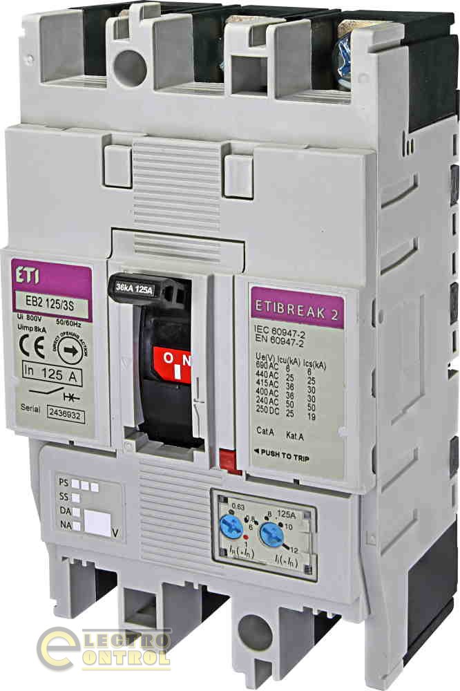 На сайті інтернет – магазину ecshop (Електроконтроль) , Ви можете ознайомитися й купити автоматичний вимикач EB2 125/3S 125А 3р (36ка) 4671046 ETI.