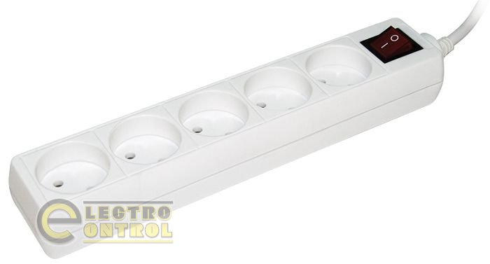 Подовжувач В5 До-Вимикач 5 місць 2Р/5 метрів 2х0.75 мм2 10А/250В