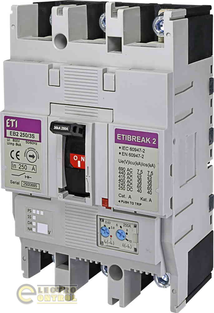 На сайті інтернет – магазину ecshop (Електроконтроль) , Ви можете ознайомитися й купити автоматичний вимикач EB2 250/3S 250А 3р (36ка) 4671083 ETI.