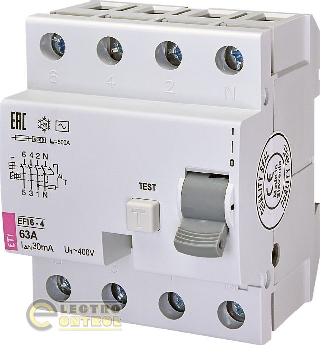 На сайте ecshop (Электроконтроль) Вы можете ознакомиться и купить Реле дифференциальное (УЗО) EFI6-4 63/0,03 тип AC (6kA)2062139ETI.