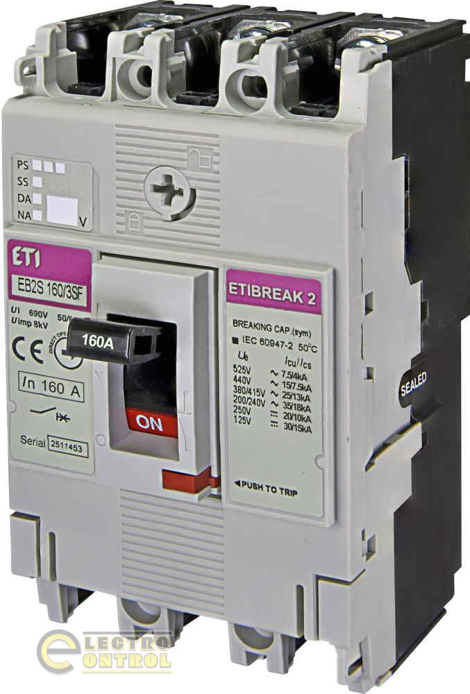 На сайті інтернет – магазину ecshop (Електроконтроль) , Ви можете ознайомитися й купити автоматичний вимикач EB2S 160/3SF 160A 3P (25kA фіксоване настроювання) 4671837 ETI.