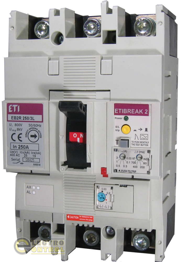 На сайте интернет – магазина ecshop (Электроконтроль) , Вы можете ознакомиться и купить автоматический выключатель со встроенным блоком УЗО EB2R 250/3L 160А 3Р 4671581 ETI.