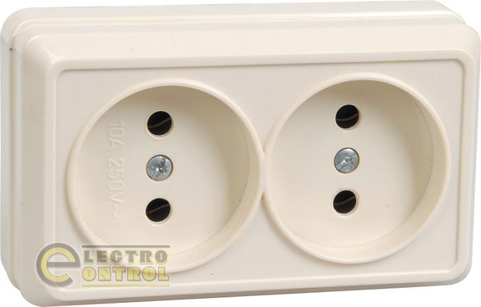 Розетка двомісна без заземленого контакту 10А відкритої установки РС 2-окм ОКТАВА (кремовий)