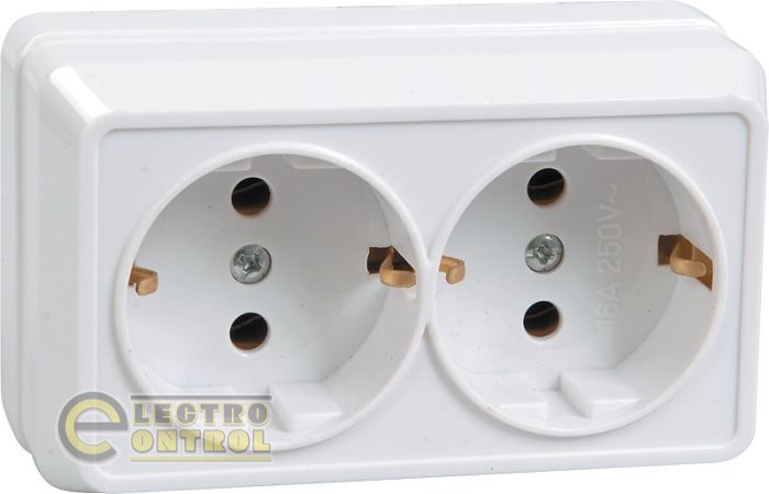 Розетка двомісна із заземленим контактом 16А відкритої установки РС 3-окм ОКТАВА (кремовий)