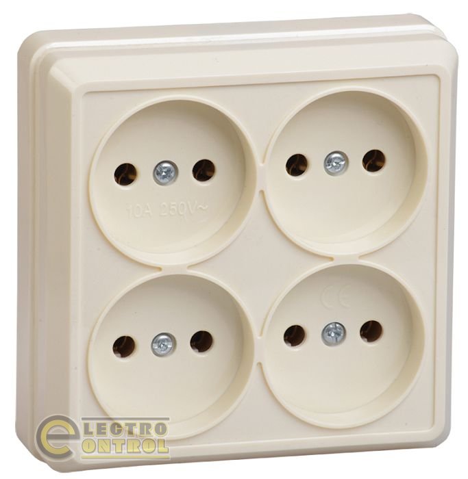 Розетка чотиримісна без заземленого контакту 10А відкритої установки РС 2-ОК ОКТАВА (кремовий)