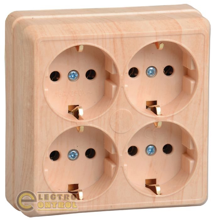 Розетка чотиримісна із заземленим контактом 16А відкритої установки РС 3-ОС ОКТАВА (сосна)
