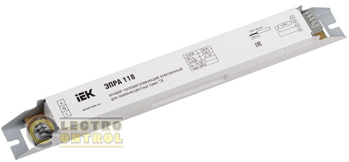 На сайте ecshop (Электроконтроль) Вы можете ознакомиться и купить ЭПРА 118 для линейных ЛЛ Т8 LLV118D-EBFL-1-18