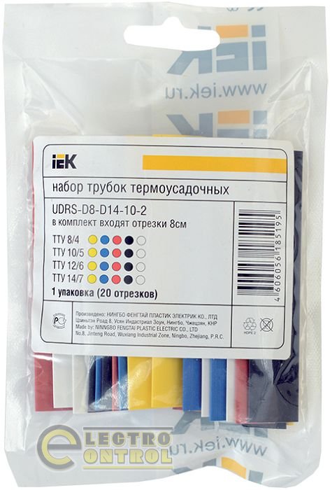 Термоусадочні трубки ТТУ IEK виготовлені з модифікованого поліетилену, призначені для забезпечення надійної електричної ізоляції, маркування й подальшої ідентифікації проводів. Кожний набір являє собою нарізку термоусадочних трубок різних діаметрів і квітів, що особливо зручно при монтажі електропроводки. Набори містять тонкостінні термоусадочні трубки довжиною 10 см або 8 см діаметром 2 мм, 4 мм, 6 мм, 8 мм, 10 мм, 12 мм і 14 жовтого, жовто-зеленого, синього, червоного, чорного й білого квітів. Набори представлені в різних комплектаціях по 10 і 20 трубок у наборі.0