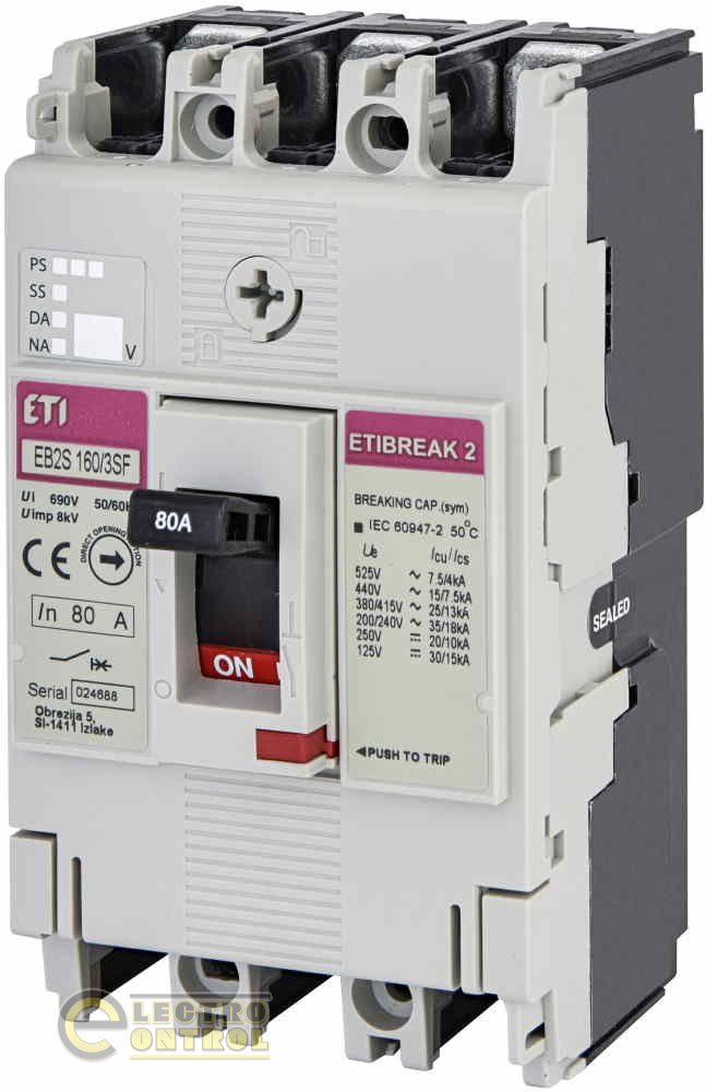 На сайті інтернет – магазину ecshop (Електроконтроль) , Ви можете ознайомитися й купити автоматичний вимикач EB2S 160/3SF 80A 3P (25kA фіксоване настроювання) 4671834 ETI.