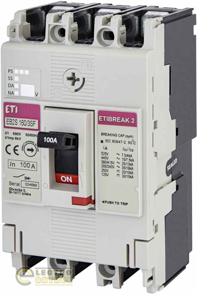 На сайті інтернет – магазину ecshop (Електроконтроль) , Ви можете ознайомитися й купити автоматичний вимикач EB2S 160/3SF 100А 3P (25kA фіксоване настроювання) 4671835 ETI.