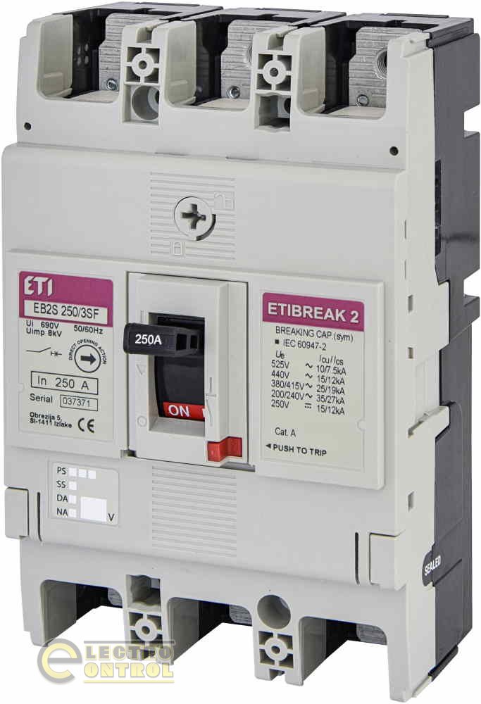 На сайті інтернет – магазину ecshop (Електроконтроль) , Ви можете ознайомитися й купити автоматичний вимикач EB2S 250/3SF 250А 3P (25kA фіксоване настроювання) 4671839 ETI.