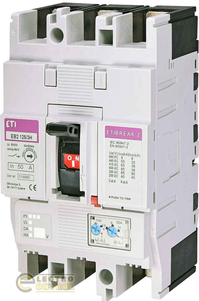На сайте интернет – магазина ecshop (Электроконтроль) , Вы можете ознакомиться и купить автоматический выключатель EB2 125/3H 125A 3p (65kA) 4672106 ETI.