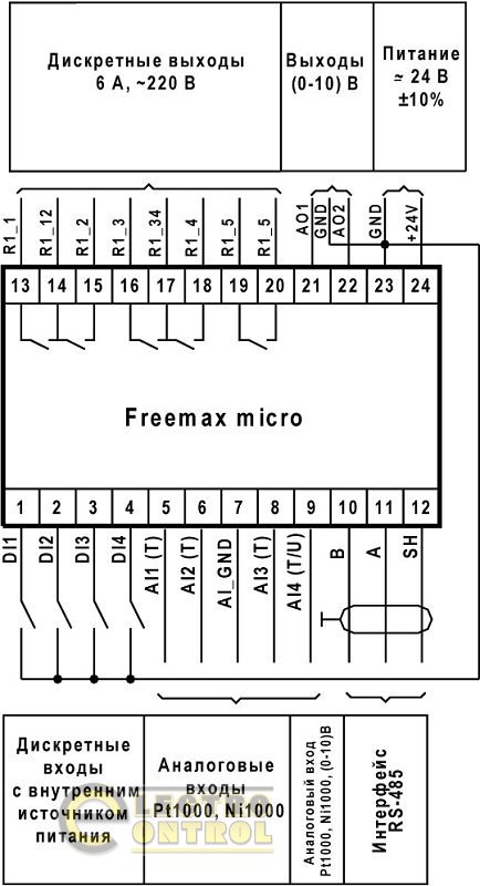 * Программа создается на компьютере и переносится в контроллер по сети RS-485 **Подключение первичных преобразователей с выходным сигналом (4-20) мА возможно при применении блока преобразования сигнала BPS - (4-20) мА → (2-10) В. *** Интерфейс RS-485 является составной частью прибора. |