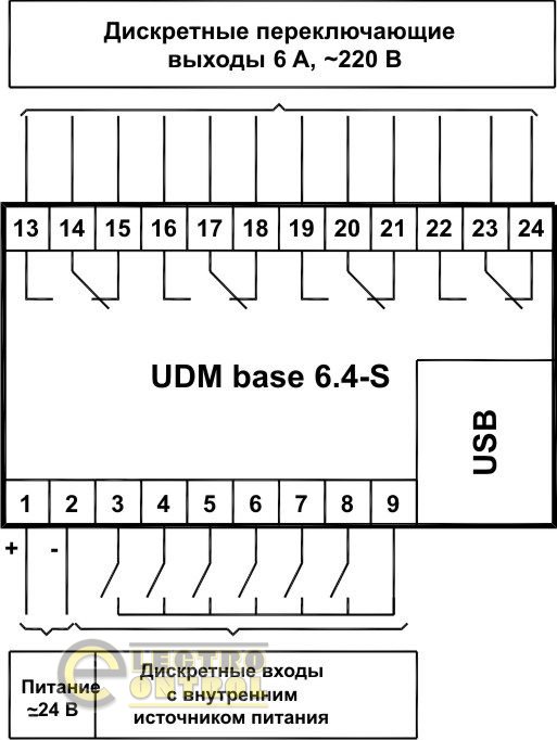 Входы | дискретные с внутренним источником питания,не более 5 Гц, длительность импульса не менее 0.1 с | 6 шт |