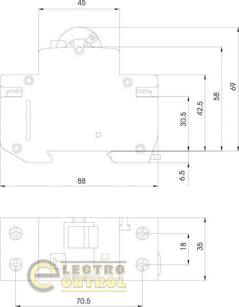 Диференціальний автоматичний вимикач KZS-R 1p+N C 6/0,03 тип A (10kA) 740616103